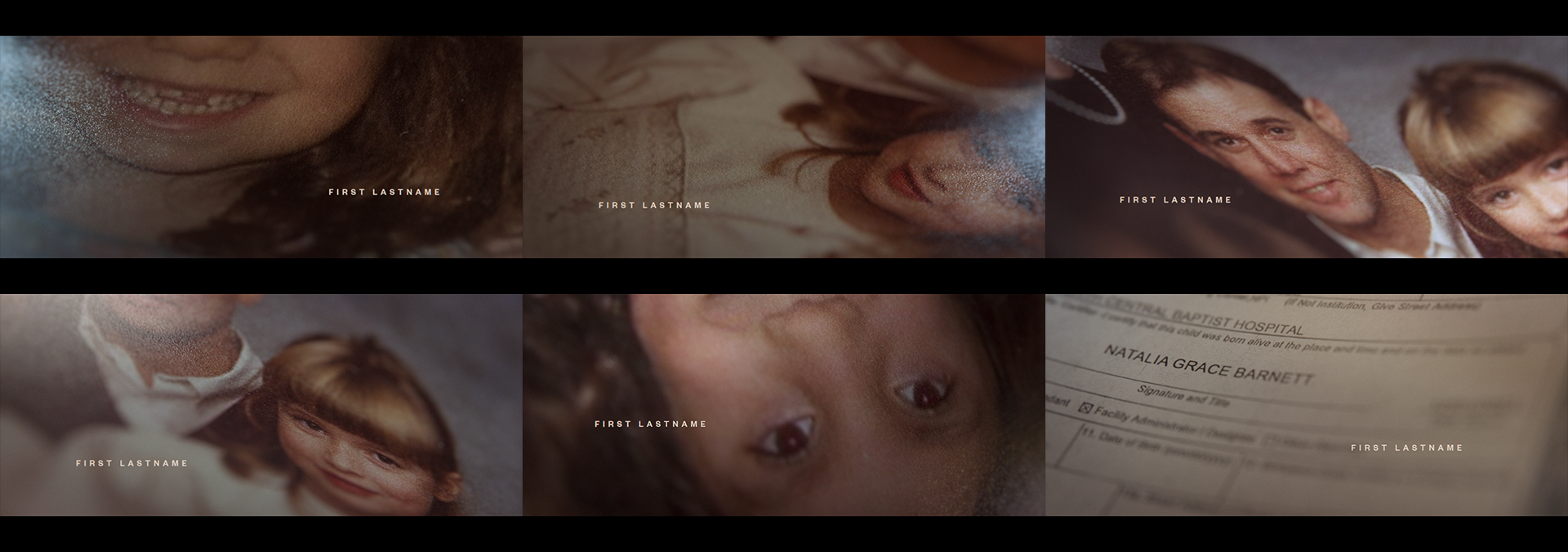 Design and concepts for the main titles of Hulu’s Natalia Grace-drama series, Good American Family. Pitch created at Elastic.